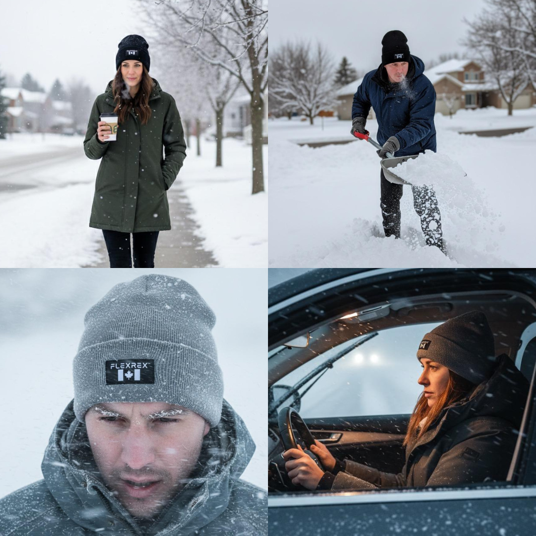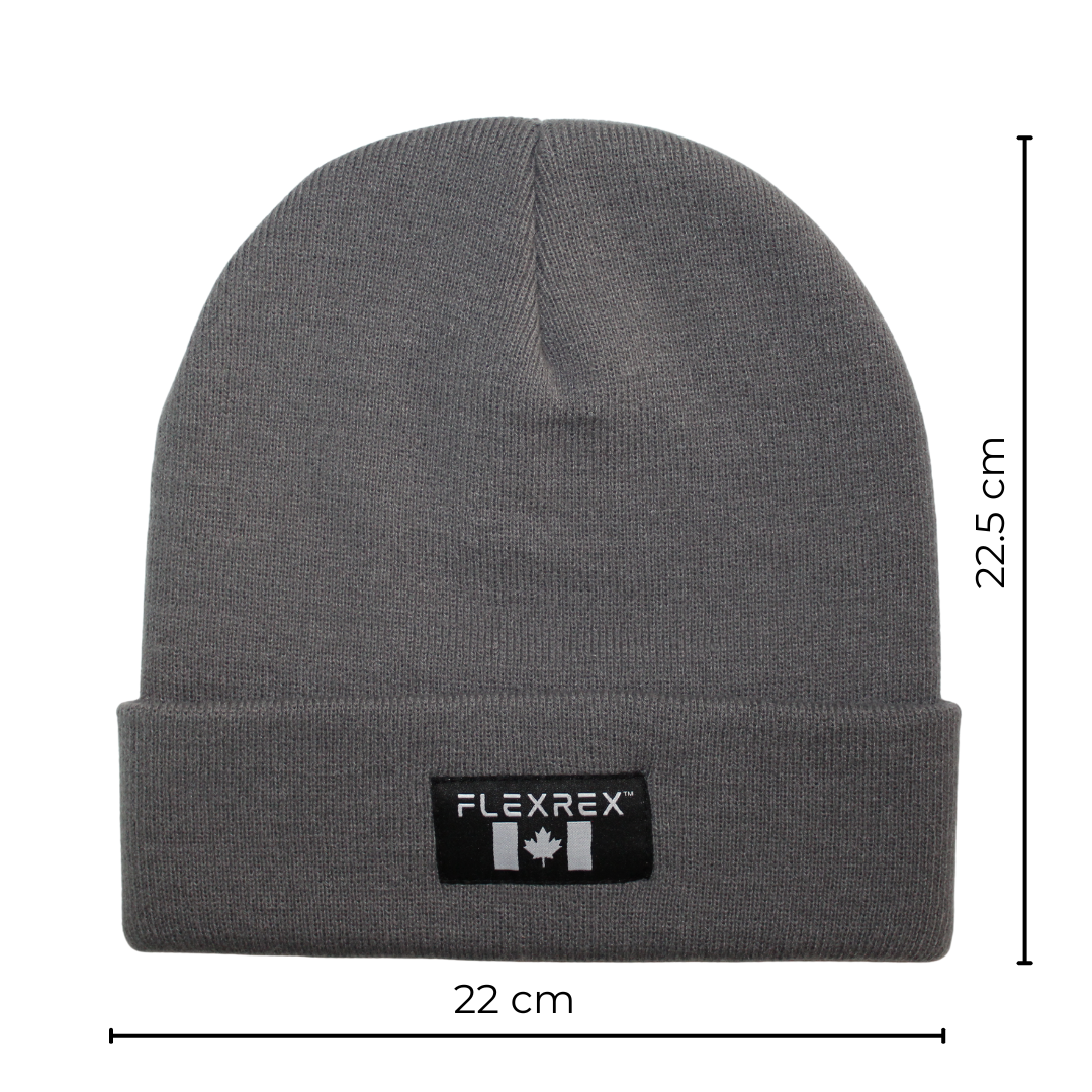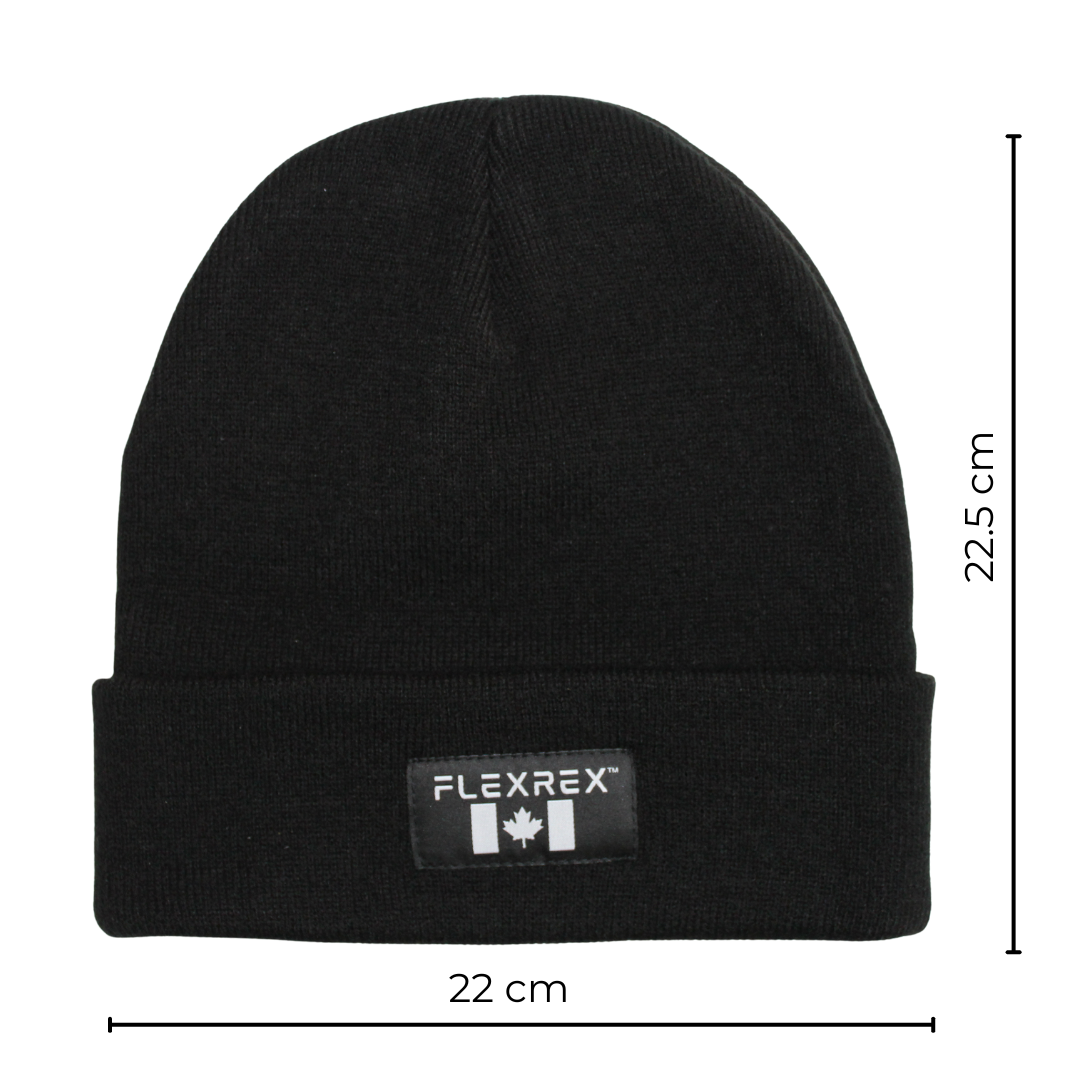Stay cozy during cold Canadian winters with this classic FLEXREX knit beanie. Crafted from 100% acrylic material, this winter hat offers exceptional warmth and comfort for all your outdoor activities. The versatile unisex design features a stylish fold-over cuff and a sleek FLEXREX logo woven label with the Canadian flag. Perfect for everyday wear, this beanie combines practical warmth with contemporary street style. The one-size-fits-most design comfortably accommodates most adult head sizes, while the durable knit construction ensures lasting wear through multiple seasons. Available in classic black and grey colour options, this beanie makes an excellent addition to your winter wardrobe. The soft, non-irritating fabric keeps you comfortable during extended wear, whether you're hitting the slopes, commuting to work, or enjoying outdoor winter activities. This FLEXREX beanie offers the ideal balance of style, functionality, and warmth for the fashion-conscious individual.